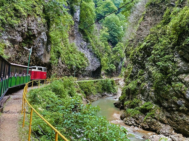 Сначала вы прокатитесь по узкоколейке на симпатичном поезде — по пути вы посмотрите на отвесные скалы, водопады, реку Курджипс. А аудиогид расскажет об истории ущелья